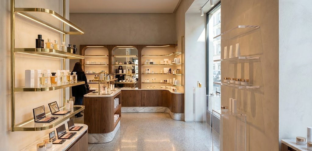 Kozmetik mağazalarında raf tasarımları, markanın kimliğini yansıtan bir vitrin işlevi görür. Mat, parlak, metalik ya da ahşap yüzeylerin kullanımı; markanın lüks, doğal ya da genç algısını doğrudan etkiler.